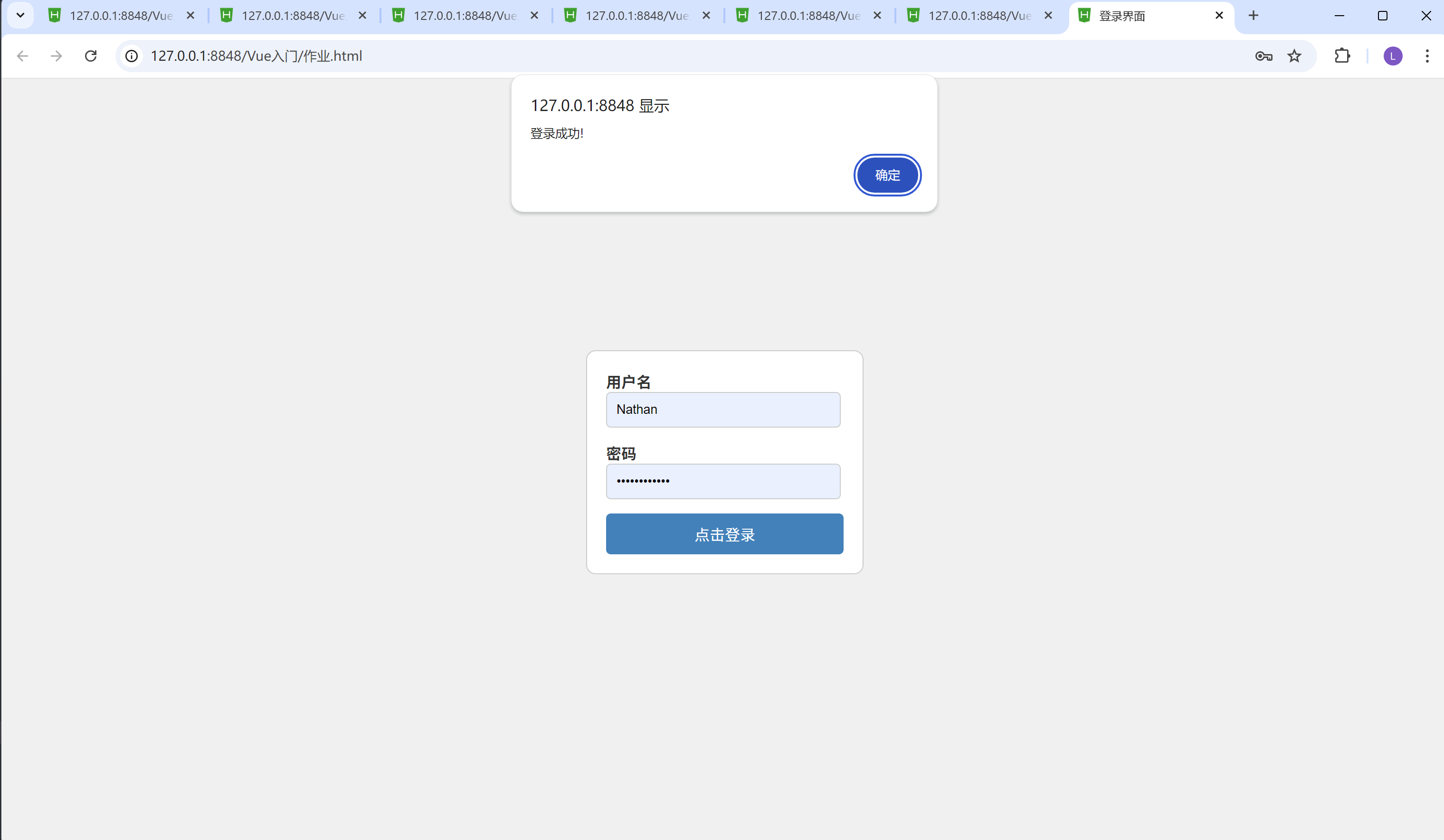 alert("登录成功!");