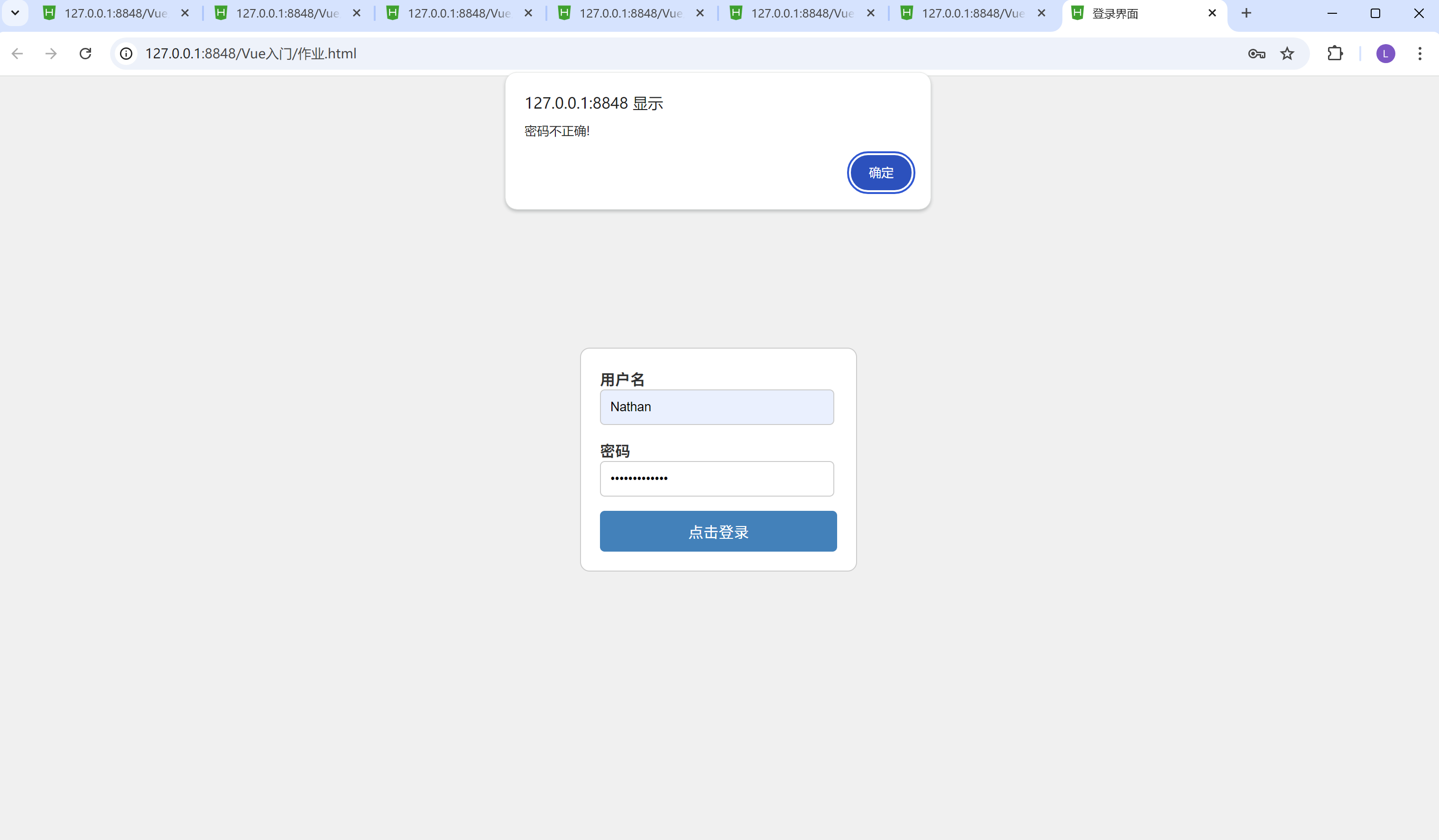 alert("密码不正确!");