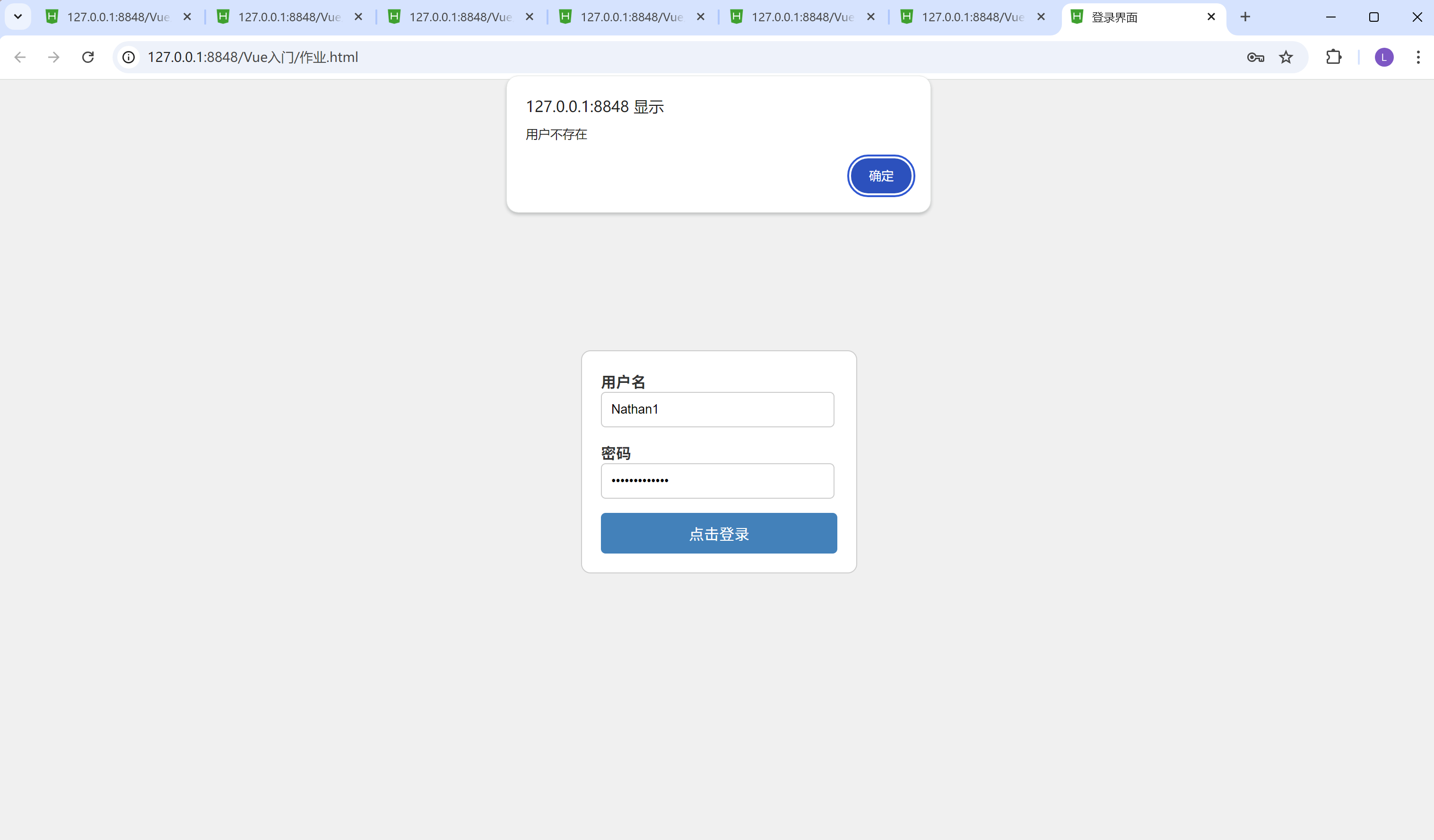 当账号和密码都不正确时(会弹出用户不存在)