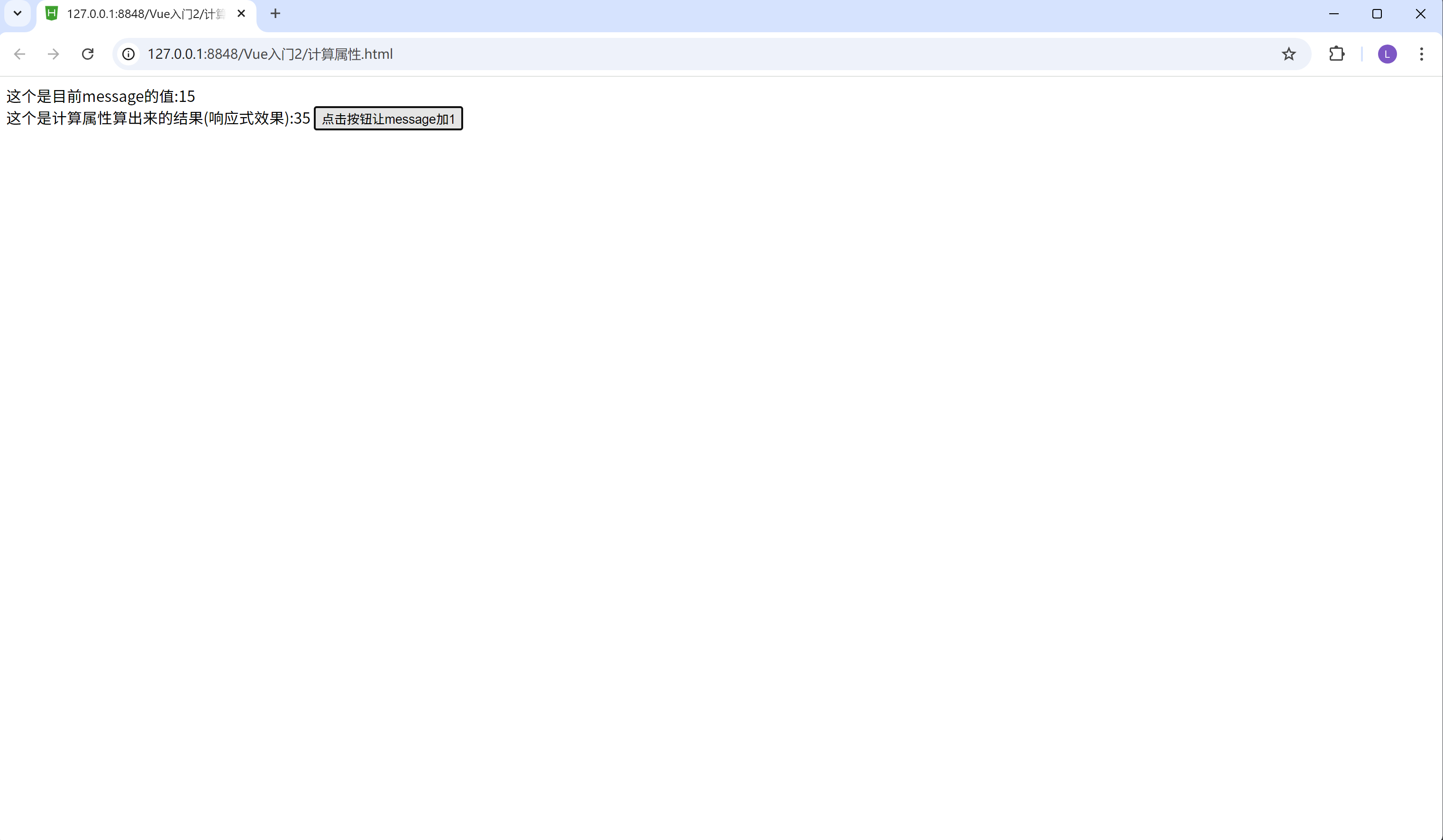 这是因为computed属性有响应式的效果, 当点击按钮将值加1的时候, 上面的值会加1, 下面computed里面的值也会自动增加。