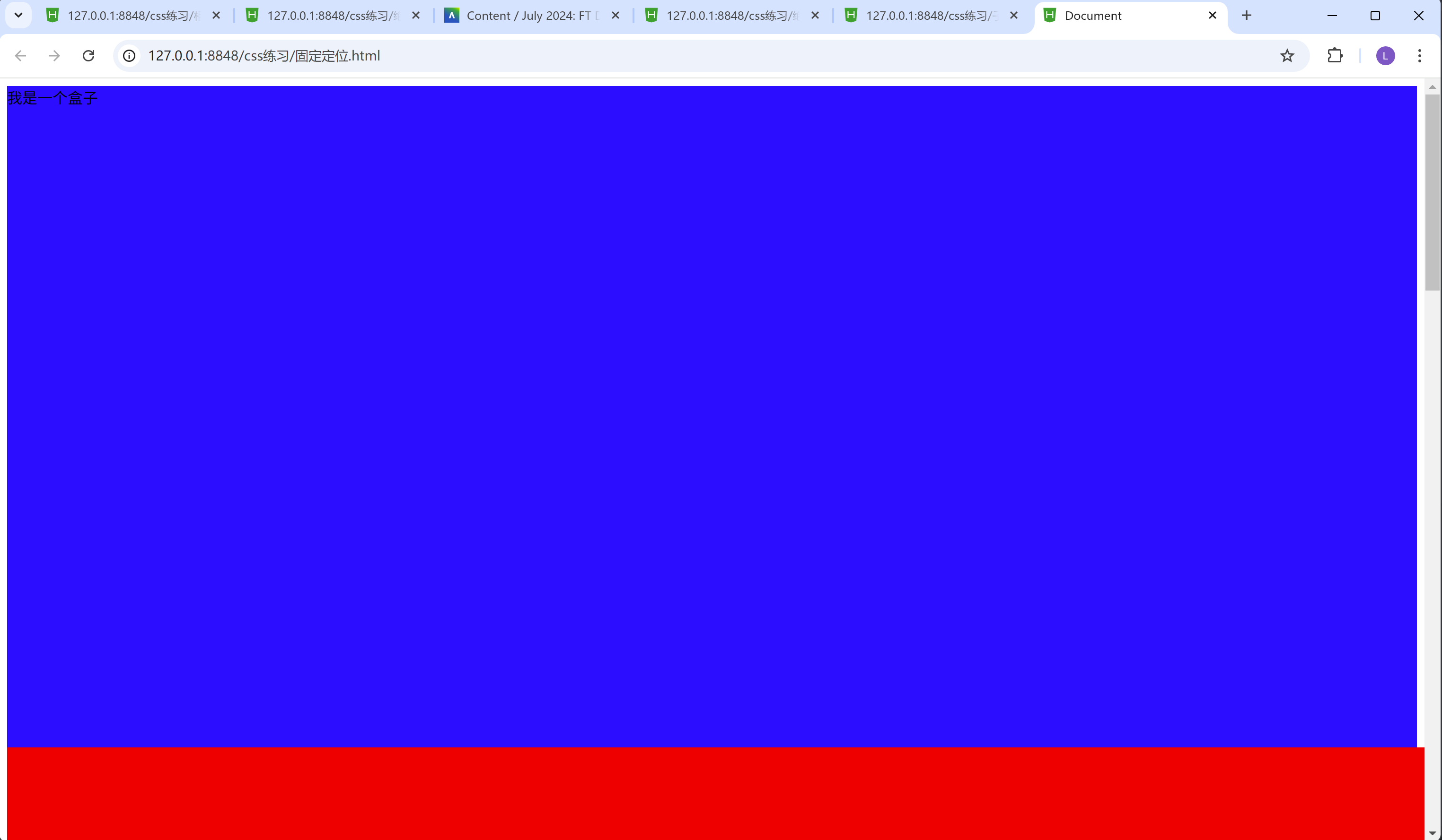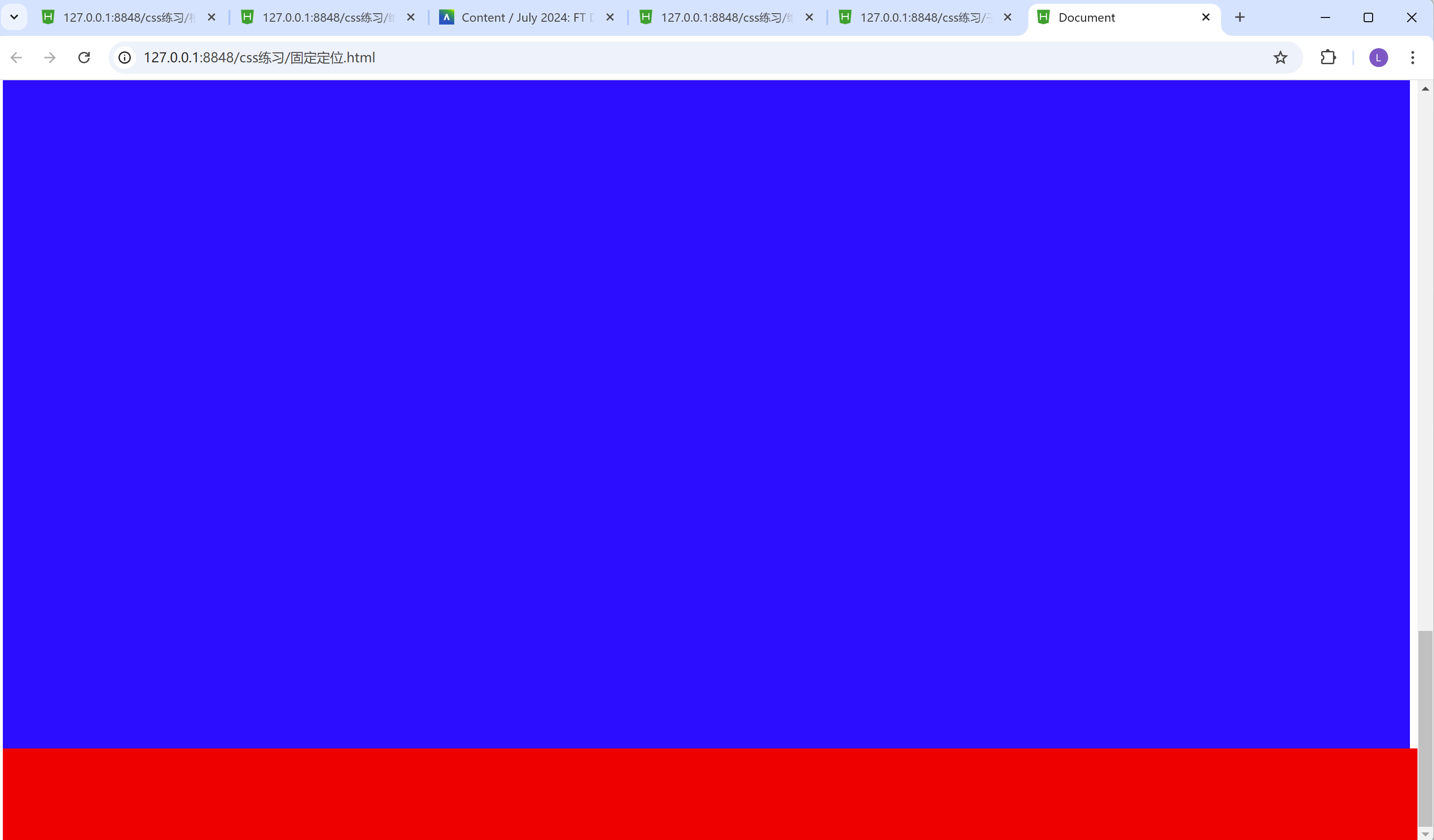 我们可以从两张图片看的出来, 无论滚动条怎么上下滑动, 红色的方框始终在最下方, 这就是固定布局的作用。