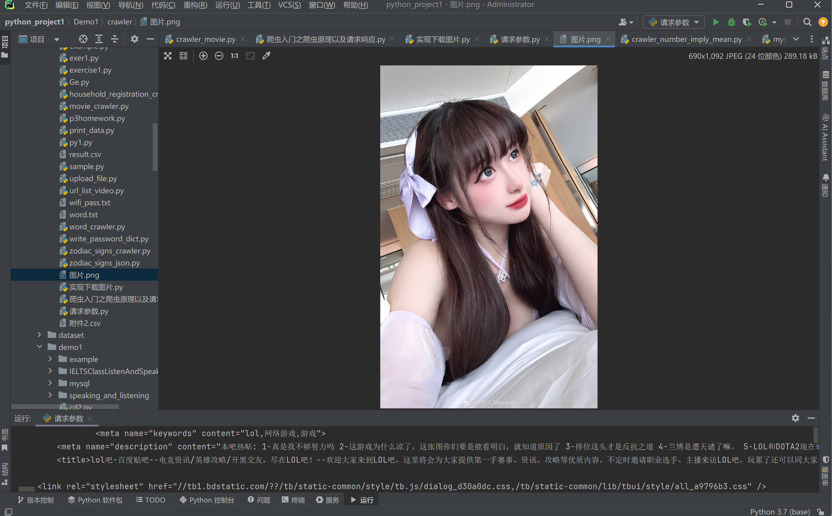 2-从当前首页随便找一张图片通过requests模块进行保存(在代码里面就是用的requests模块)