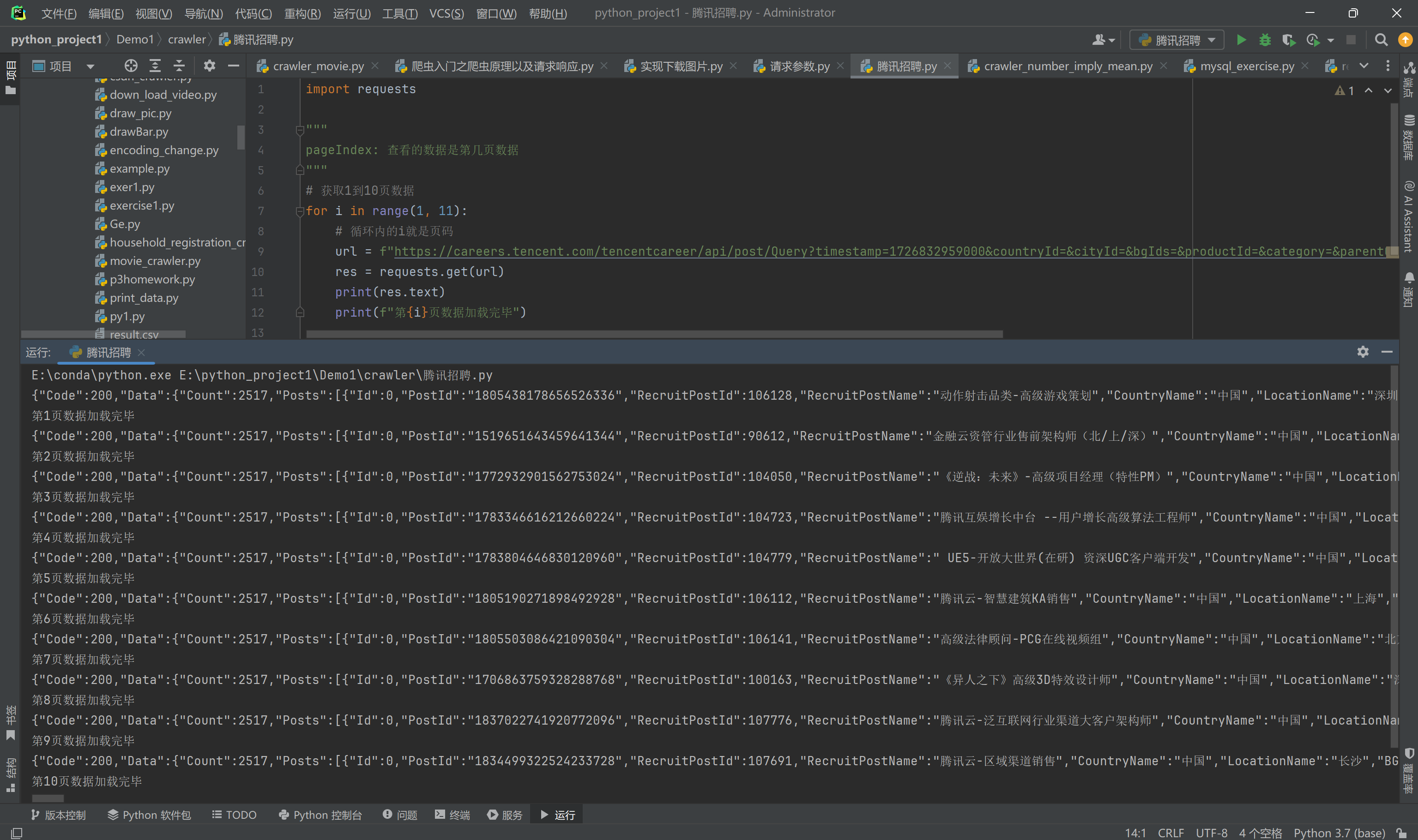 现在的任务, 就是需要爬取腾讯网站的1到10页的数据