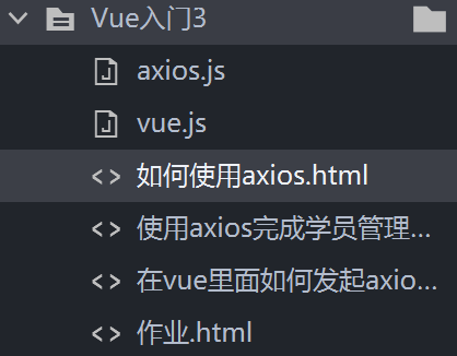 这次我们学习需要用到以前已经下载好的vue.js和现在下载好的axios.js。
