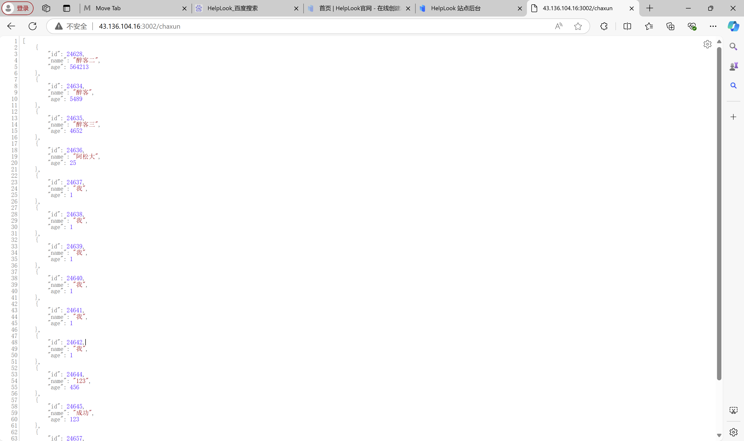 我们很清晰的可以发现, 有三个字段, age年龄, id代表唯一标识的id号, name名字。